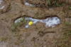Description: Dandelion and footprint in mud